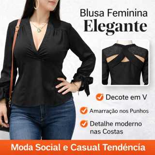 Blusa Feminina Elegante Manga Longa Decote V com Detalhe nas Costas Moda Social e Casual Tendência em Oferta na Shopee Shopee