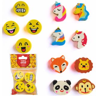Kit 4 Borrachas Escolar Ponteira para Lápis Yins Bichinhos Unicórnio Emoji em Oferta na Shopee Shopee 🔥 -50%