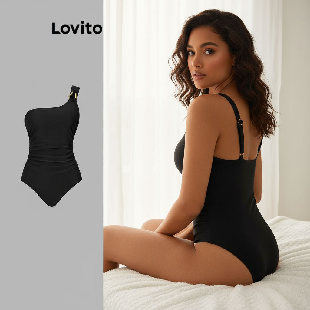 Lovito Maiô Casual de Uma Peça em Metal Liso Assimétrico para Mulheres LBL16824 em Oferta na Shopee Shopee