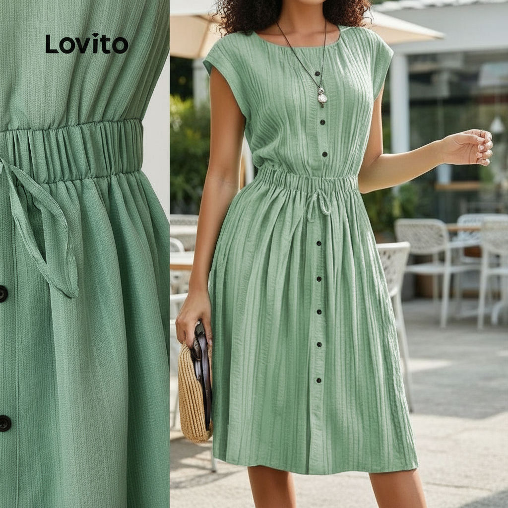 Lovito Vestido Feminino Casual Liso com Amarração em Jacquard para Verão e Primavera LBL24345 em Oferta na Shopee Shopee