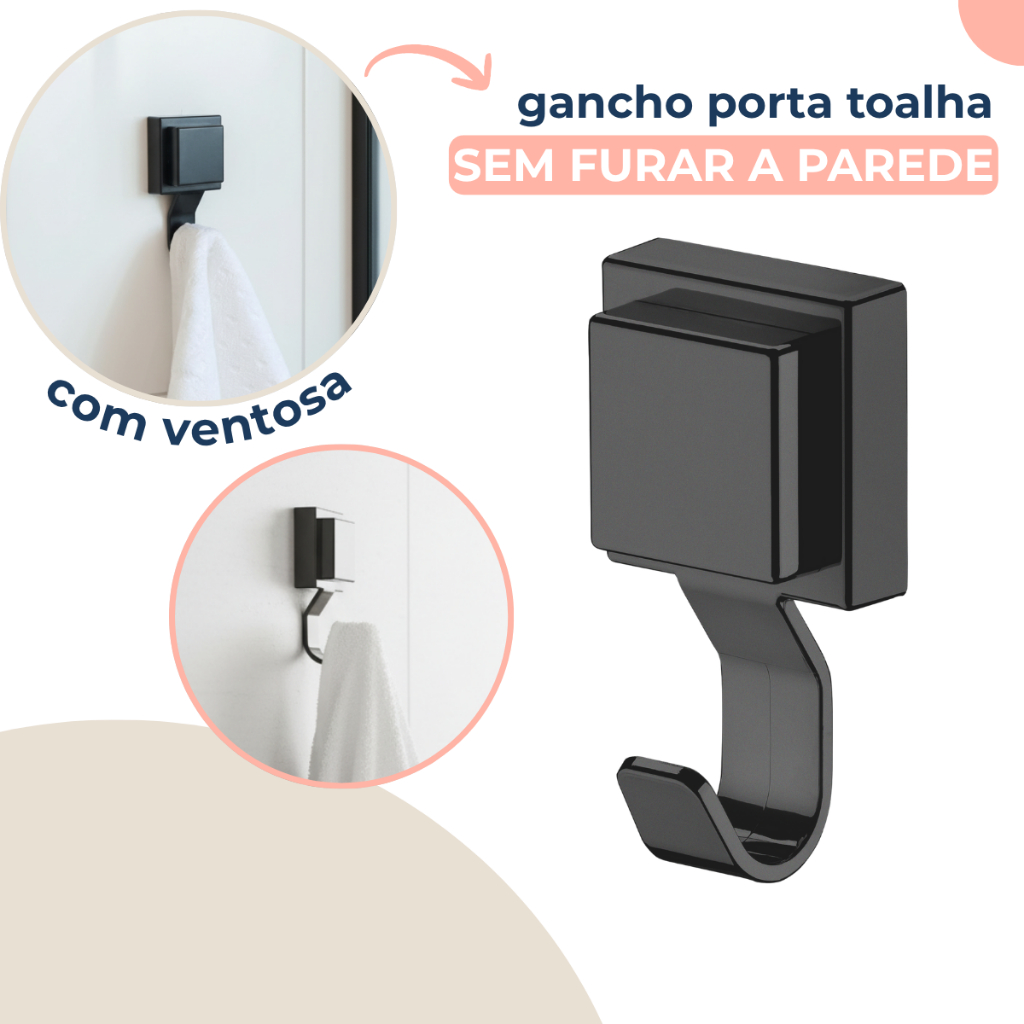 Gancho Parede Cabide Suporte Porta Toalha Banho Rosto Banheiro Multiuso Preto Fosco Ventosa Sem Furo em Oferta na Shopee Shopee