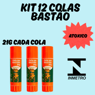 KIT 12 Colas Bastão 21g Material Escolar Atoxico Artesanato Infantil Lavavel Escritorio em Oferta na Shopee Shopee