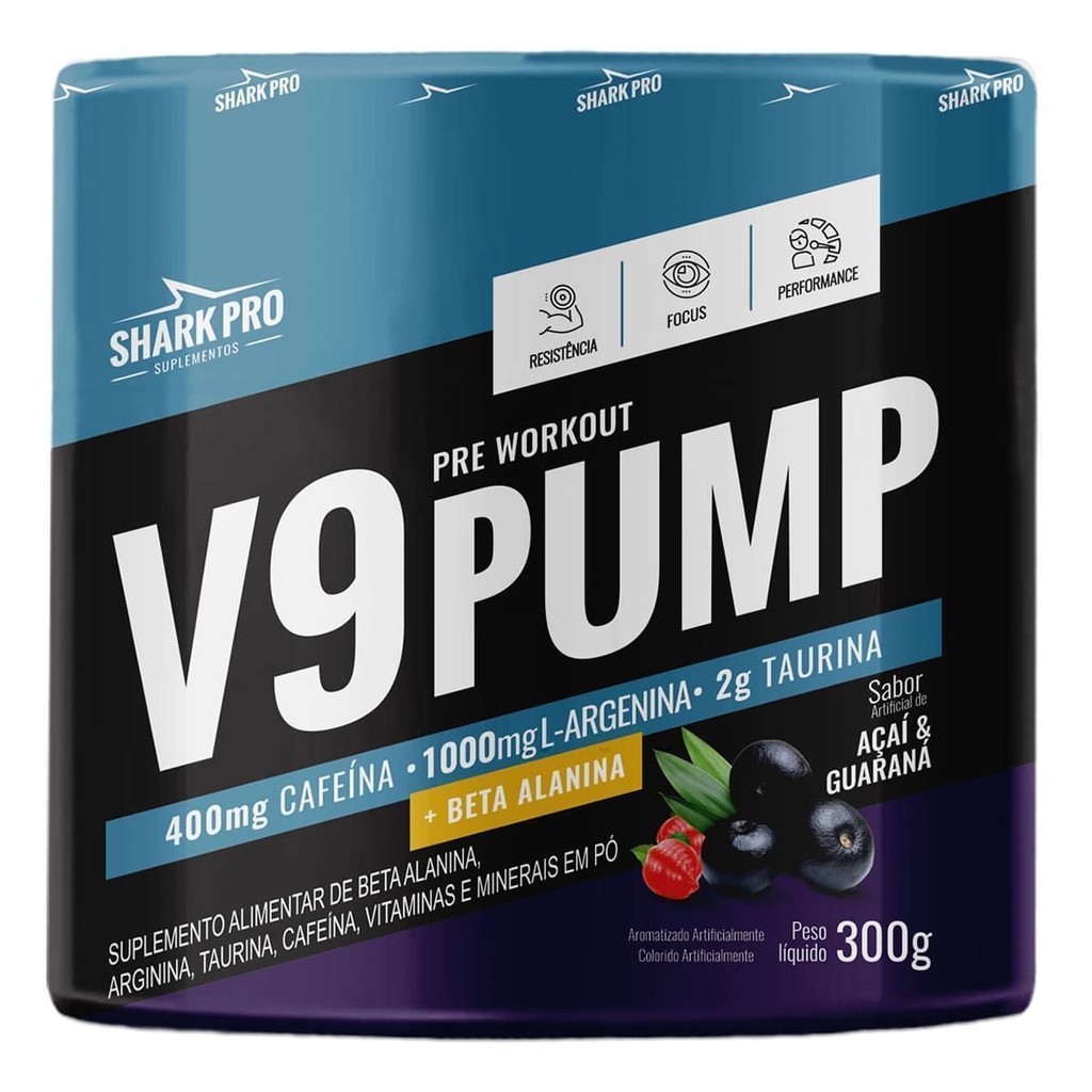 V9-Pump Pre Workout + L-Arginina - 300g Açaí & Guaraná - Shark Pro em Oferta na Shopee Shopee