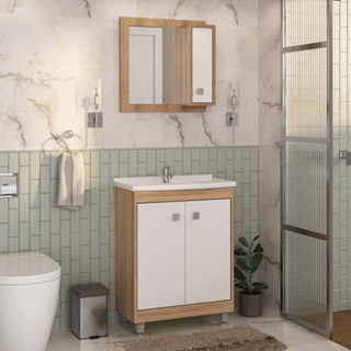 Gabinete Banheiro com Cuba e Espelheira 60cm Multimóveis CR10058 Castanho Argel/Branco em Oferta na Shopee Shopee