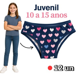 Kit 12 Calcinhas Juvenil Para Adolescente até 15 Anos Forro 100% Algodão em Oferta na Shopee Shopee