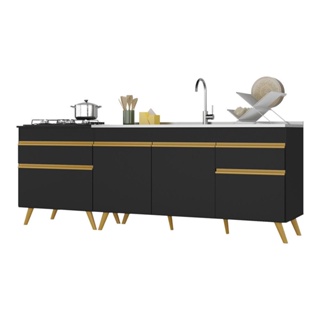 Kit 2 Balcões Gabinete Pia 150 cm e Cooktop 70 cm Veneza GB Multimóveis MP2073 Preto em Oferta na Shopee Shopee