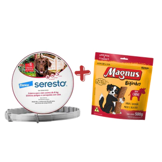 Kit Seresto Coleira Antipulgas Cães acima de 8kg Elanco + Magnus Bifinhos Sabor Carne 500g em Oferta na Shopee Shopee