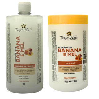 Kit Nutrição Banana e Mel Shampoo 1L + Máscara 1KG Brilho Intenso Nutre os fios deixando Sedosos e fortes Profissional em Oferta na Shopee Shopee