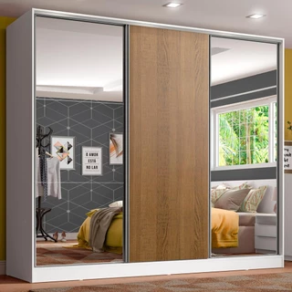 Guarda-Roupa Casal Madesa Reno 3 Portas de Correr com Espelhos - Rustic/Branco em Oferta na Shopee Shopee