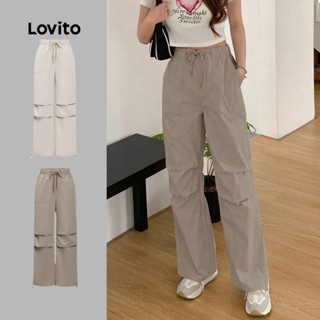 (Hot) Lovito Calças plissadas lisas casuais para mulheres L87ED258(Multicolorido) em Oferta na Shopee Shopee