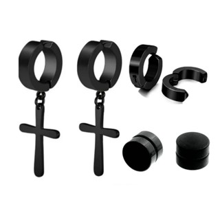 Kit 3 Pares Brinco Brincos Masculino Feminino Argola  Em Aço Inox Cruz Crucifixo De Pressão não precisar de Furo em Oferta na Shopee Shopee