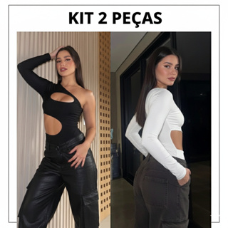 KIT 2 Body Feminino com Recortes Manga Longa moda gringa Sexi Elegante Moda Gringa TikTok em Oferta na Shopee Shopee