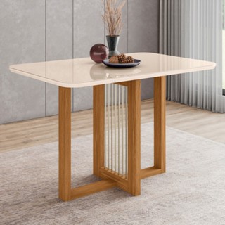 Mesa de Madeira Natalí com Vidro Nature/Off White Sc73- Henn em Oferta na Shopee Shopee