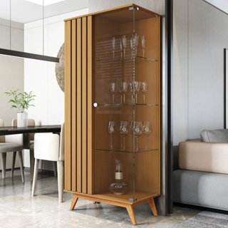 Cristaleira com Lateral e Porta Ripada Jb Açaí Vidro Temp 4mm e Pés e Travessas em Madeira Maciça Nature em Oferta na Shopee Shopee