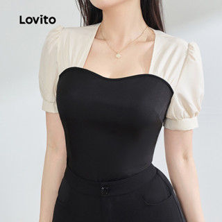 Lovito Elegante Tecido Liso Costura Redonda Primavera/Verão Blusa Preta E Branca Para Mulheres LBL25468 em Oferta na Shopee Shopee