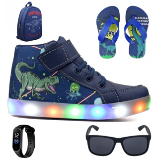 Tenis Botinha Infantil Luzinha De Led Dinossauro + Mochila + Chinelo + Oculos + Relogio em Oferta na Shopee Shopee