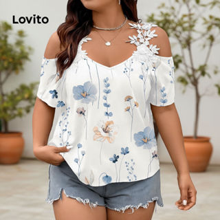 Lovito Blusa Feminina Plus Size Floral Ombro Frio LBL18610 em Oferta na Shopee Shopee