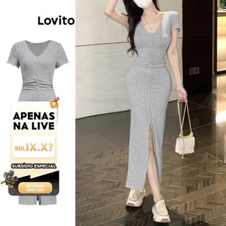 (LIVE STREAM SALE) Lovito Vestido casual simples com frente dividida para mulheres L108ED610 em Oferta na Shopee Shopee