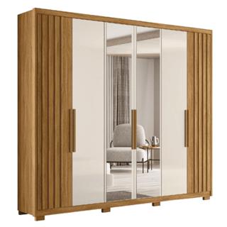 Guarda Roupas Casal Ripado com Espelho 6 Portas 4 Gavetas 2,60m Araguaia Freijó / Off White Moval em Oferta na Shopee Shopee