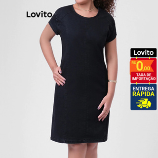 Lovito Vestido Plus Size Jeans Manga Curta com Ziper Feminino LB179BRL208 em Oferta na Shopee Shopee