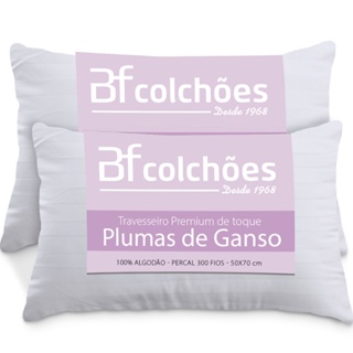 Kit 2 Travesseiros Fibras Toque Pluma de Ganso 100% Algodão 300 Fios Premium 50x70cm - BF Colchões em Oferta na Shopee Shopee