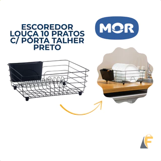 Escorredor de Louça 10 Pratos Preto Aço com Porta Talheres Mor em Oferta na Shopee Shopee