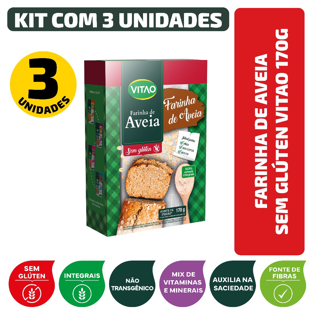 Kit Farinha De Aveia Sem Glúten Vitao 170G - 3 Unidades em Oferta na Shopee Shopee