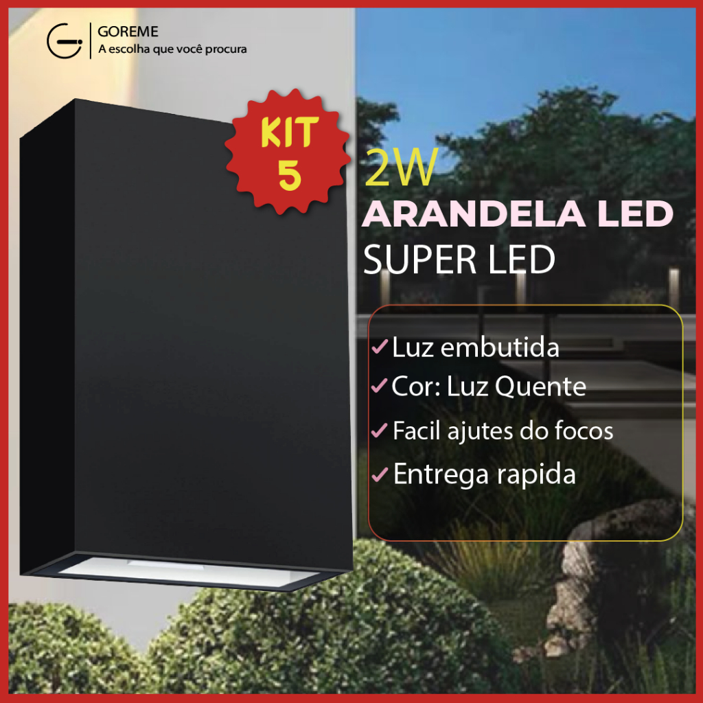 Kit 5 Arandelas LED 4W Slim 2 Focos de Vidro + Luz Embutida, ModeloEuropeu Modernopara Interno e Externo, Preto e Branco em Oferta na Shopee Shopee