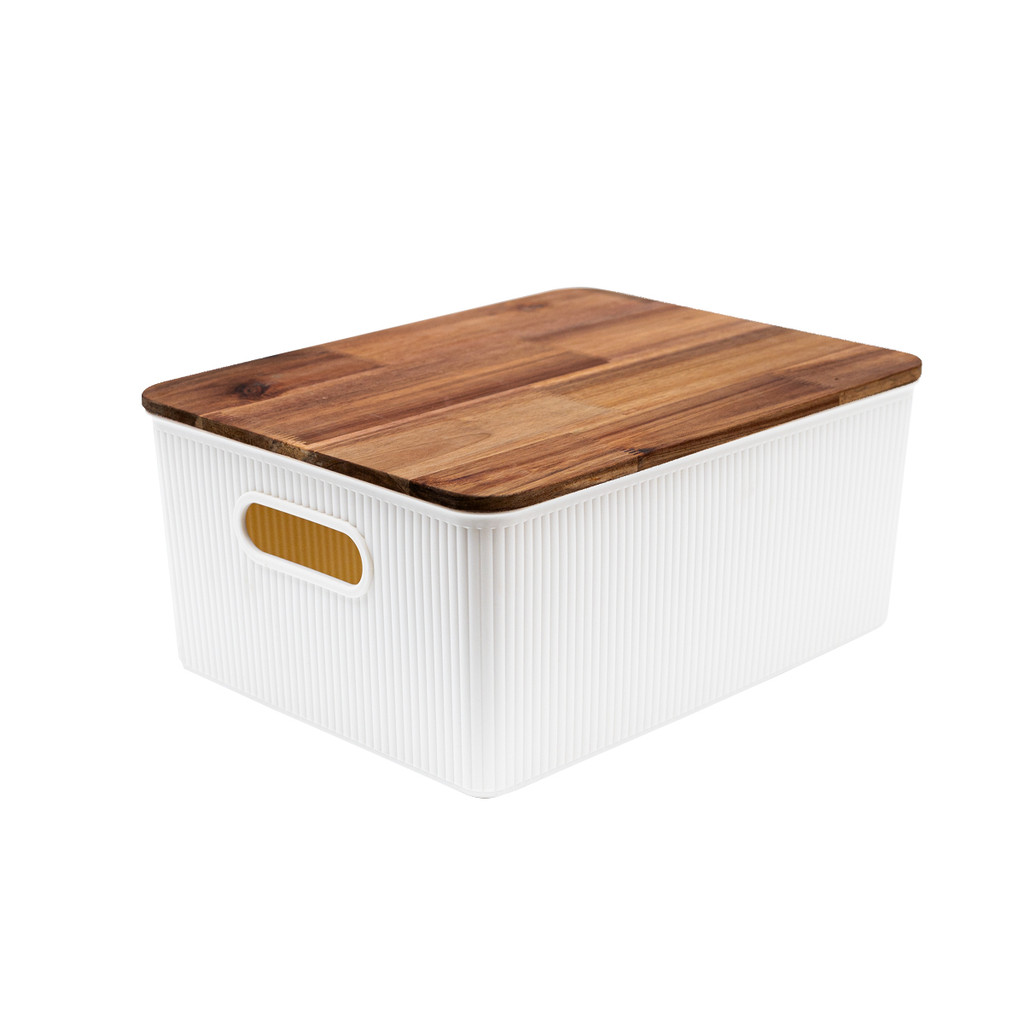 caixa organizadora 16L de plástico com tampa de madeira acácia - Oikos em Oferta na Shopee Shopee
